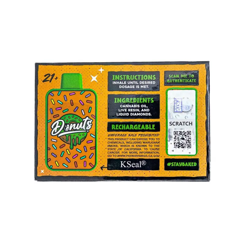 nCada sabor está elaborado a partir de cepas híbridas y está cuidadosamente infundido con sabores artificiales que evocan la deliciosa experiencia de comer donas.