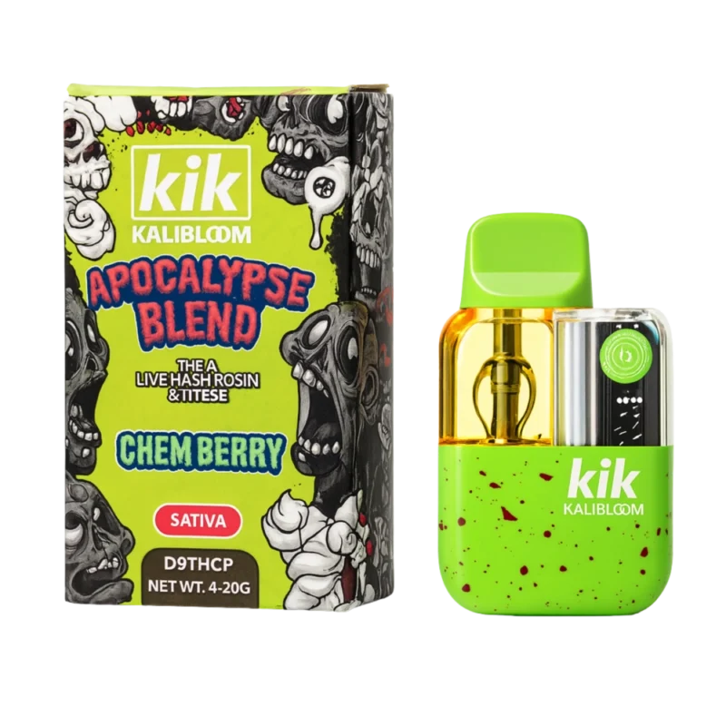El Kik 4.2g Apocalypse Blend de Kalibloom es el producto insignia de la marca, cargado con Live Hash Rosin de espectro completo, extraído en frío sin solventes para conservar cannabinoides y terpenos naturales.